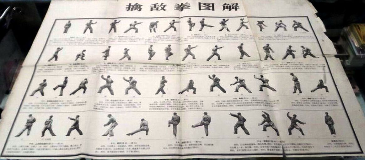 Another method is Capture the Enemy Boxing/Qing Di Quan published as a poster in 1965, the routine in question differs from the one above. It includes a total of 46 movements; to date we have not been able to find background information about this routine. The same name was also used for two completely different sequence which appeared in the form of books in 1998 and 2008. The latter manuals do have an interesting difference from those that appear earlier, mainly in the combat stance adopted, while the former is more “traditional” the main combat stance in the latter books is more modern “kickboxing style” e.g. lead hand is in front of the chin elbows down, rear hand is on the side of the jaw, feet are about shoulder width apart. Capture the Enemy Boxing routine is typically practiced by members of the Wujing (Military Police not to be confused with the PAP – Peoples Armed Police), the term “police” is misleading given that this section covers a wide range of tasks e.g. riot control, anti-terrorism, guarding of government buildings, border security etc.
