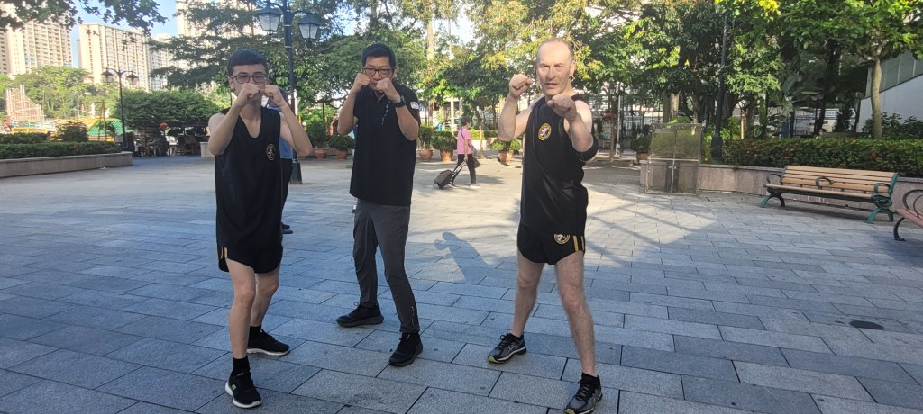 Training was grueling due to the heat and humidity; we only had some respite when it rained prior to our session as there was a typhon expected days later. One of the interesting things from coach’s Fu approach was that he had drills that could be used for self defense and with minor modifications for competition Sanda. In addition, we covered self defense escapes from common grabs and other non sport techniques. Coach Fu is very professional, encouraging and generous with his teaching, and we recommend him to anyone looking for training in Hong Kong. In between breaks he shared some stories of his martial journey.