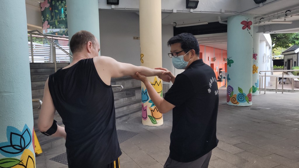Coach Fu holds several certifications from the Hong Kong Wushu Association, the Australian Coaching Institute, Hong Kong Taichi Institute, the Boxing Association of Hong Kong to name just a few. We agreed on private lessons for myself and my teenage son every other day for the two weeks we would stay in Hong Kong. Because the training was going to be outdoors, we chose the Aberdeen Pier 6 as there was a small park beside it with some tree coverage and a pedestrian bridge, we could take shelter under in case of rain while training. Every class was 1.5 hours starting at 8:00 AM to try and escape the heat as much as possible. My wife helped with translations as coach Fu’s English is basic, however I did not have too much trouble following his instructions as I was able to understand the principles he was teaching.